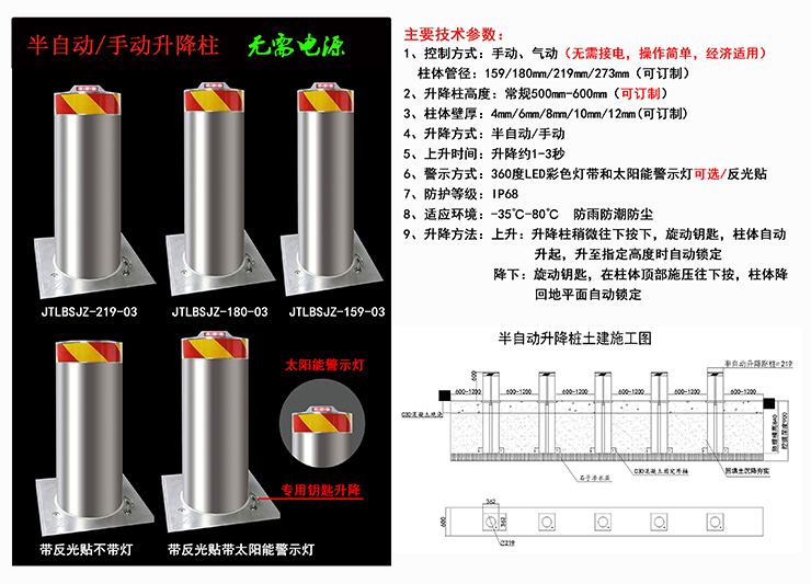 3、降下:正常狀態(tài)下只需要降下一組路樁,就可以使一般車輛駛通過。緊急情況必要時可以把所有升降路樁完全降下,使特許大型車輛通過。